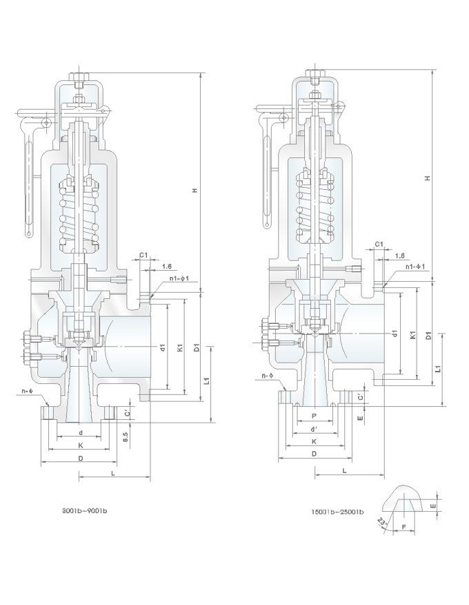 高性能蒸汽安全閥結(jié)構(gòu)尺寸圖: