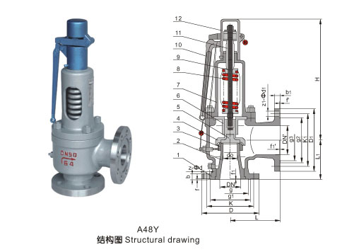 彈簧全啟蒸汽式安全閥結(jié)構(gòu)及連接尺寸