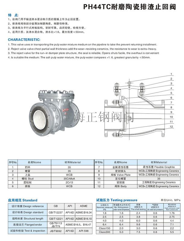 耐磨陶瓷排渣止回閥特點及結(jié)構(gòu)圖