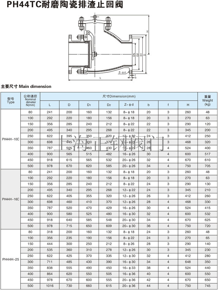耐磨陶瓷排渣止回閥主要連接尺寸