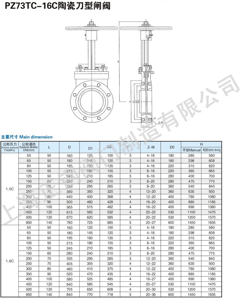 PZ73TC陶瓷刀型閘閥結構圖及連接尺寸