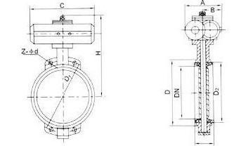 D671X氣動(dòng)對(duì)夾式蝶閥采用新型系列GT型氣動(dòng)執(zhí)行器,有雙作用式和單作用式(彈簧復(fù)位),齒輪傳動(dòng),安全可靠;大口徑閥門采用系列AW型氣動(dòng)執(zhí)行器拔叉式傳動(dòng),結(jié)構(gòu)合理,輸出扭矩大。