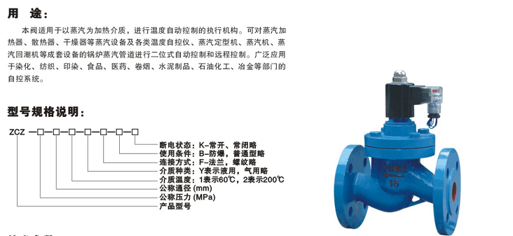 『中溫蒸汽電磁閥』專業(yè)生產(chǎn)廠家,由正鋼自主生產(chǎn)的【電磁閥】質(zhì)量可靠、價格合理、售后服務(wù)完善!中溫蒸汽電磁閥』適用于各種輕重工業(yè)及樓宇管道。正鋼品質(zhì),全球共享!【電磁閥】廣泛應(yīng)用于:化工、石化、石油、造紙、采礦、電力、液化氣、食品、制藥、給排水、市政、機(jī)械設(shè)備配套、電子工業(yè),城建等領(lǐng)域。