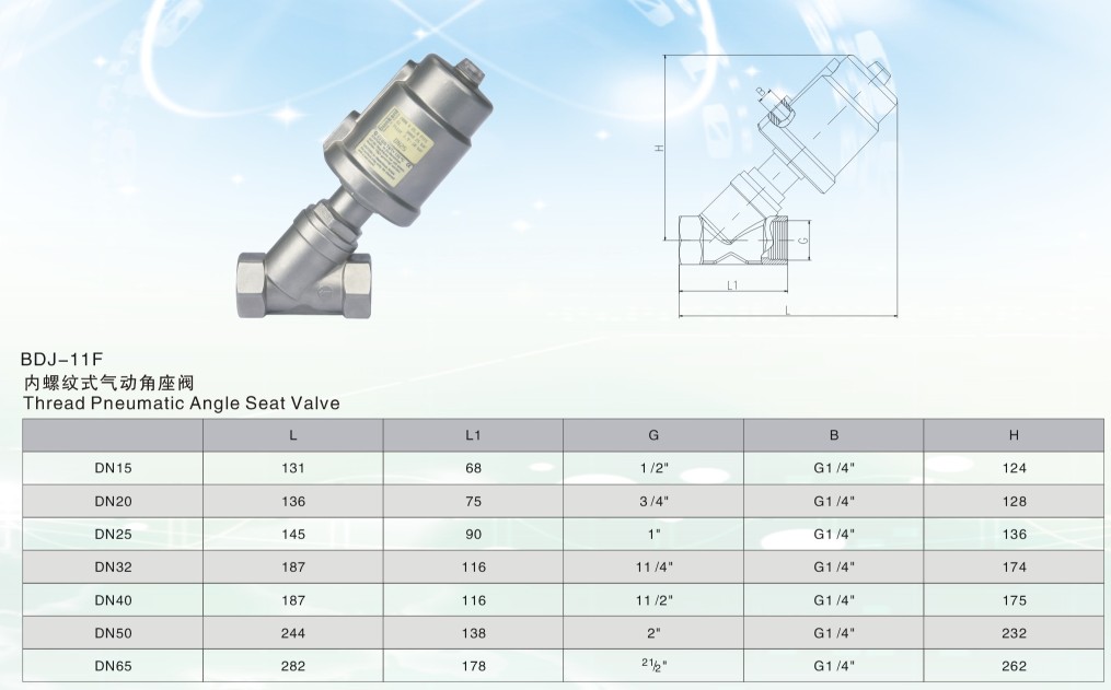 內(nèi)螺紋氣動(dòng)角座閥參數(shù):
