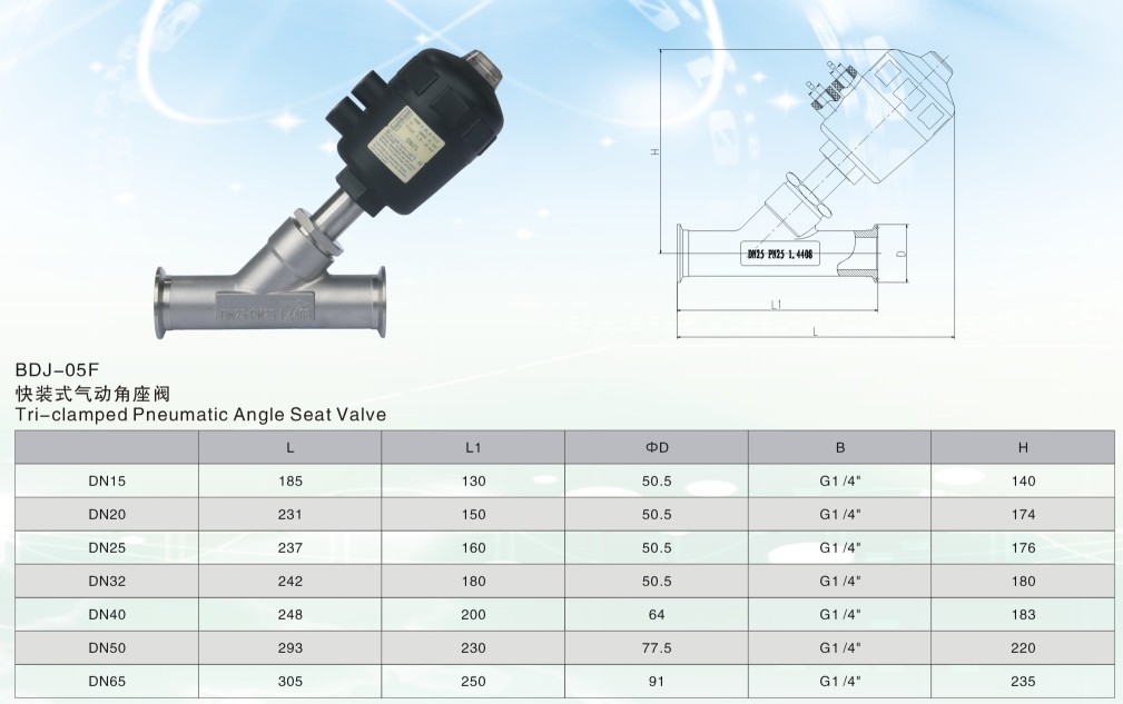 快裝式氣動(dòng)角座閥參數(shù):