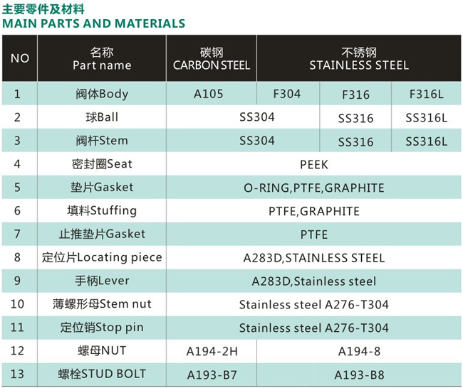 三片式鍛鋼球閥主要零部件及連接尺寸