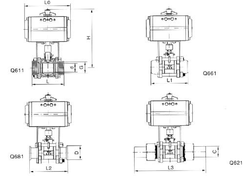【氣動(dòng)螺紋球閥主要連接尺寸】
